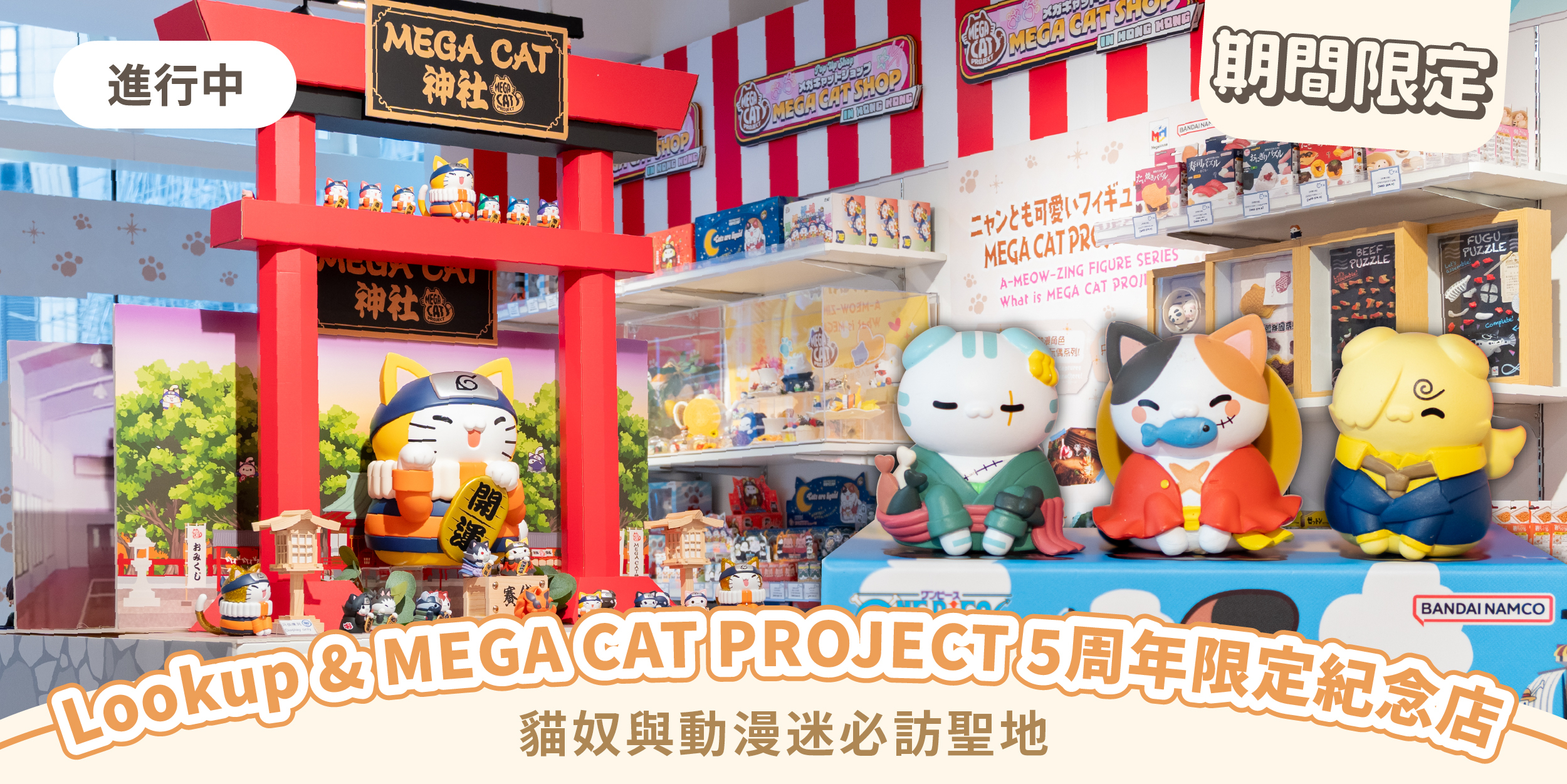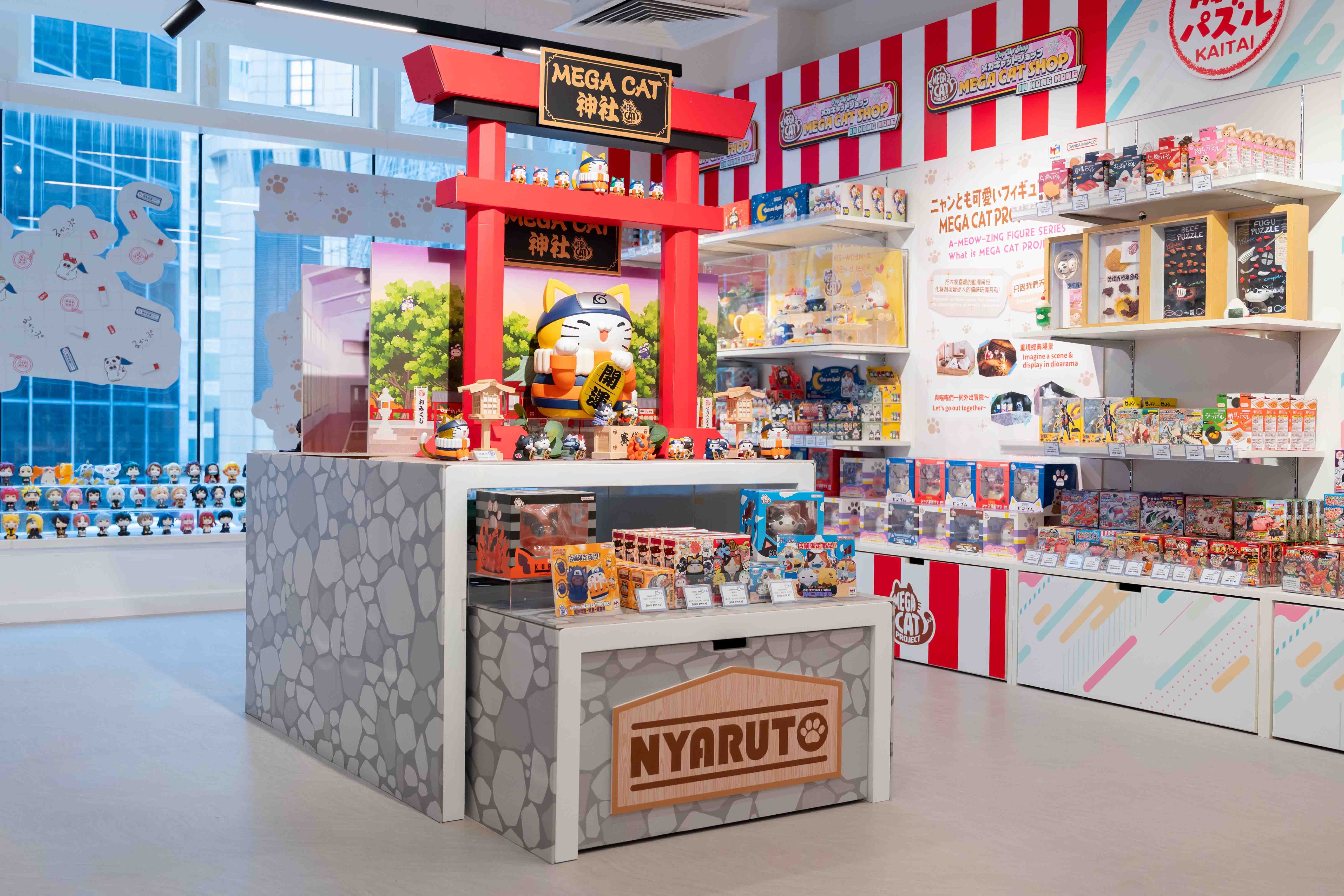 限定店將展出多個主題情景擺設,展示「MEGA CAT PROJECT」及「Lookup」的可愛迷人魅力。特設「MEGA CAT神社」主題打卡區,10倍巨大化的鳴人喵震撼登場。
