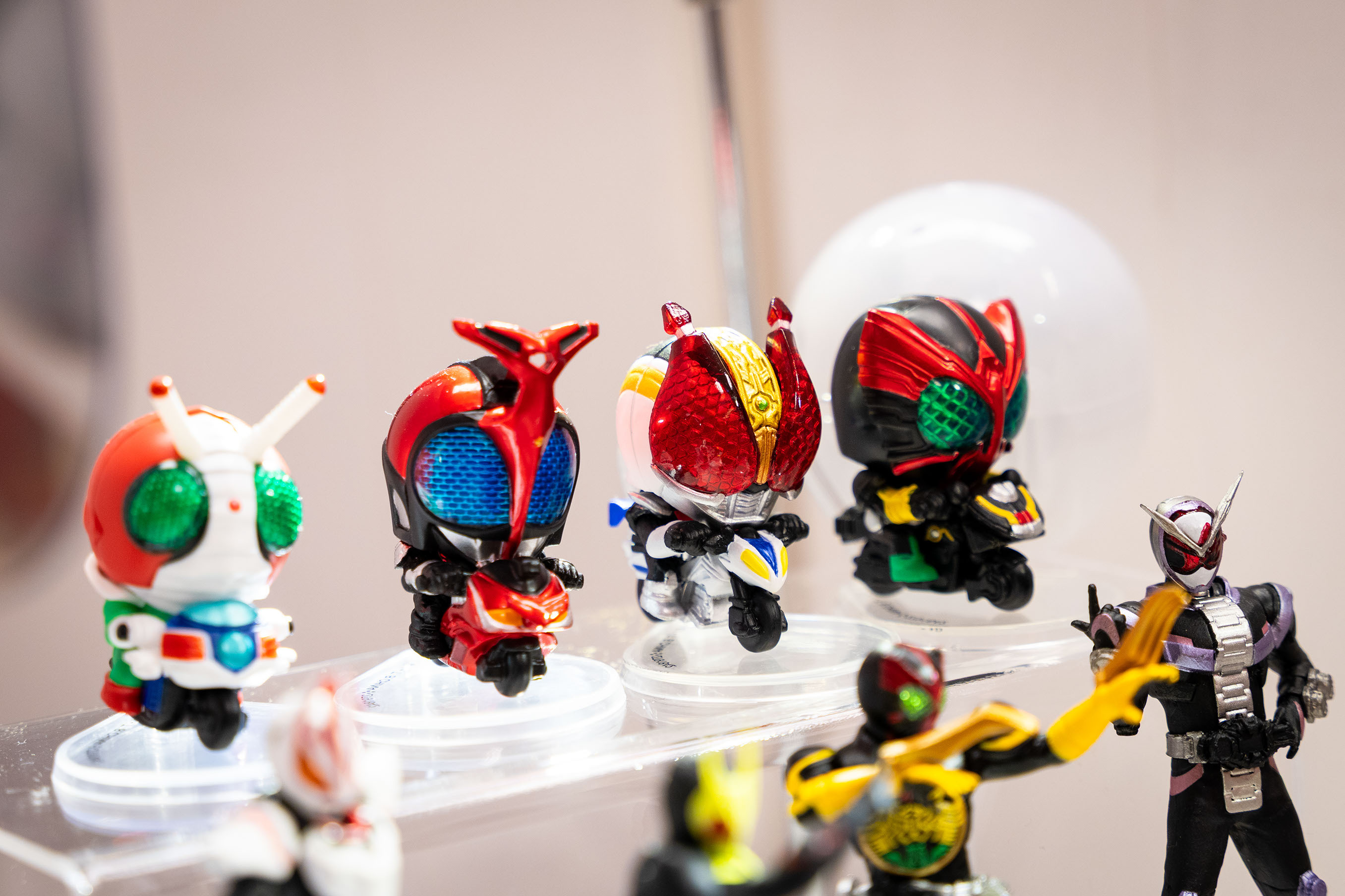 走進平成幪面超人展覽區,重溫歷代平成幪面超人的經典造型與標誌性變身腰帶,感受每位英雄登場 時的震撼魅力!展區匯聚多款人氣角色的造型展示,讓粉絲猶如置身特攝世界,親身感受英雄氣場。