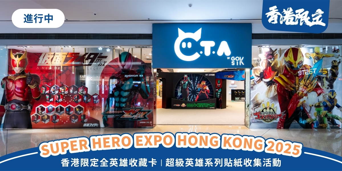 東映兩大經典特攝鉅作——《幪面超人》與《超級戰隊》,以熱血信念風靡全球!今年10月,兩大跨越半世紀英雄系列,將於 2025 年 10 月 15 日至 11 月16 日在又一城 C.T.A. by GOK SIK 舉行《SUPER HERO EXPO HONG KONG 2025》期間限定活動,為本地特攝英雄迷帶來難以忘懷的精彩體驗。 是次期間限定活動有六大獨家亮點,包括一系列香港獨家產品「超級英雄收藏卡」、「超級英雄系列貼紙收集活動」、「平成幪面超人主題商品」,以及一系列的沉浸式體驗,包括「超級英雄攝影館」、「超級英雄舞台表演及見面會」及「平成幪面超人展覽區」。